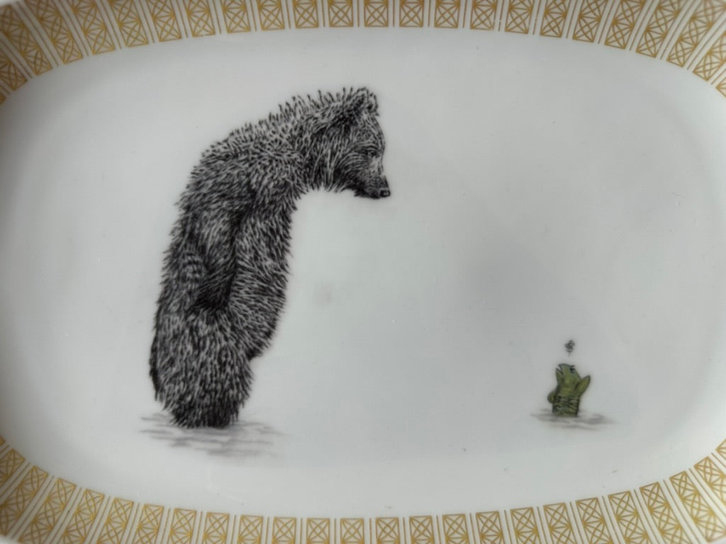 Vintage Platte 21 x 32 cm mit Gold gemustertem Rand aus der Arsberg Manufaktur
