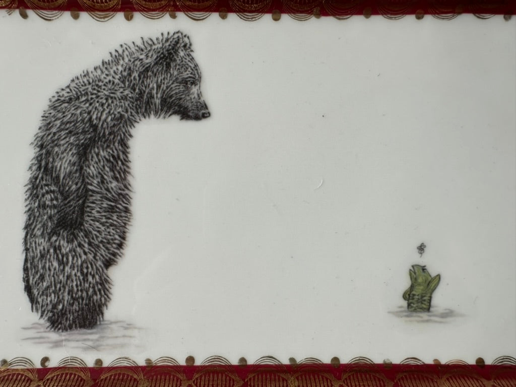 Vintage Platte 15 x 32 cm mit rot goldenem Rand aus der Winterling Bavaria Manufaktur