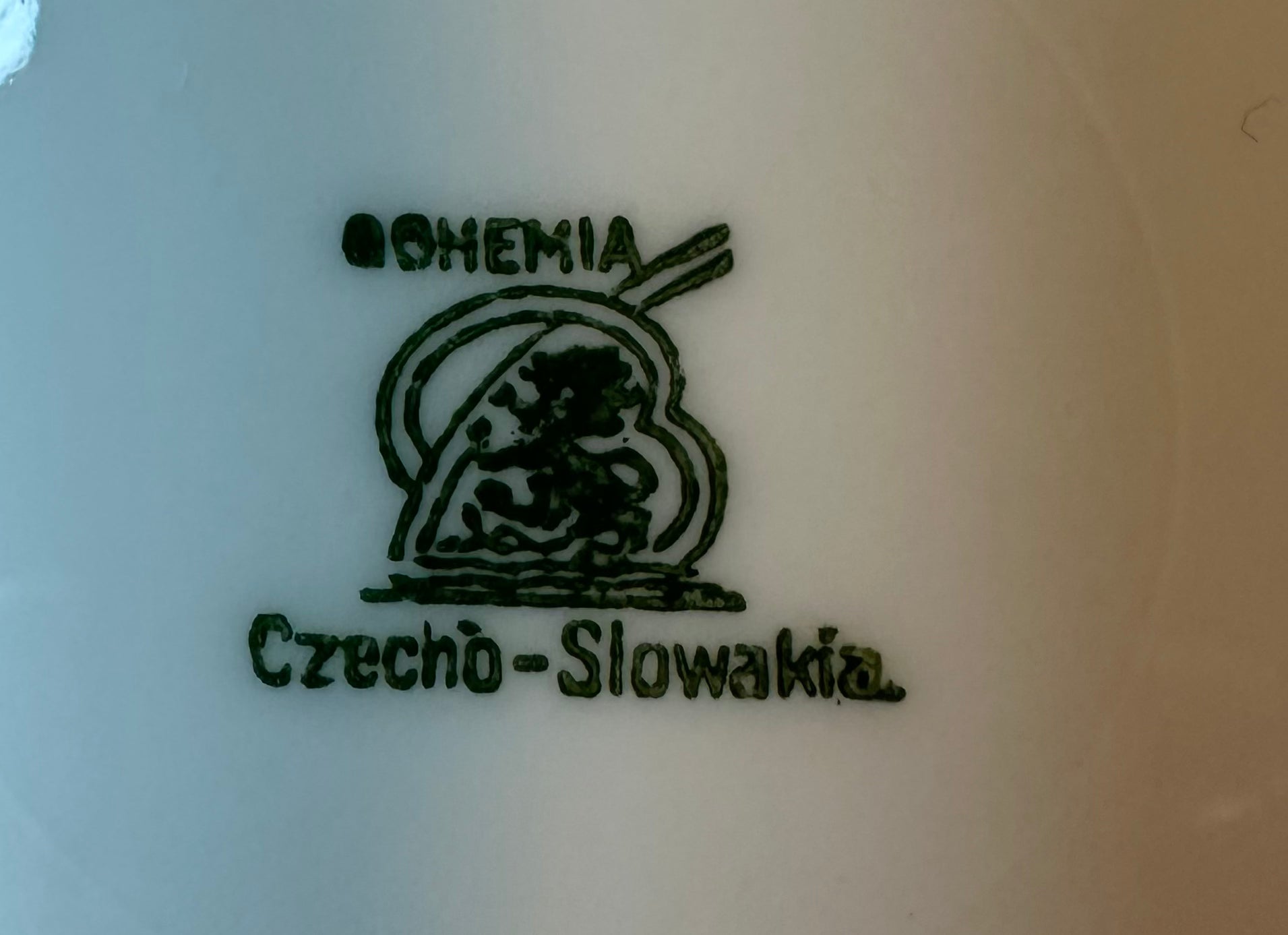 Kleiner Vintageteller 21 x 21 cm mit schwarz gemustertem Rand aus der Bohemia Czecho-Slowakia Manufaktur