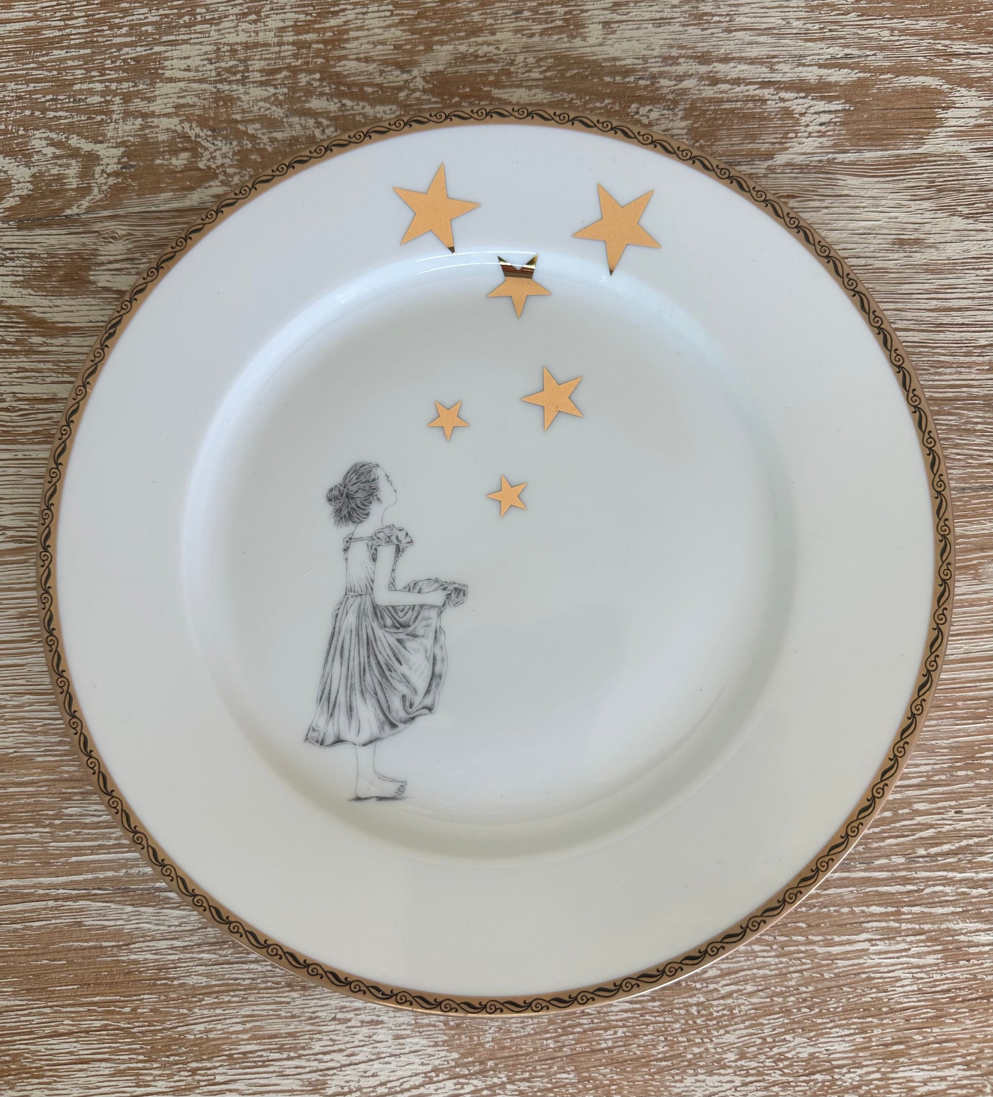 Teller Sternentaler klein mit Goldrand
