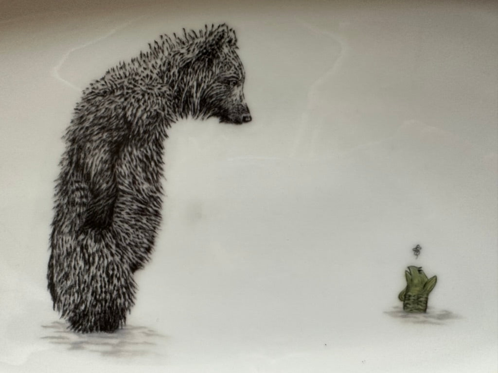 Vintage Platte Bär mit Fisch