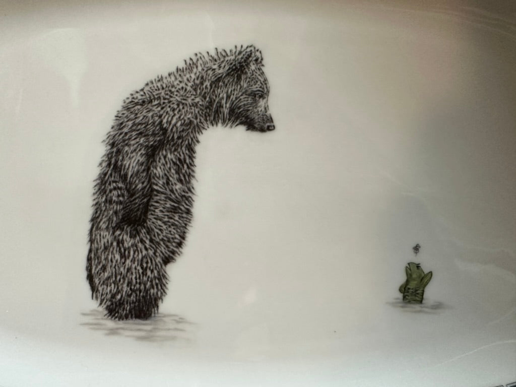 Vintage Platte Bär mit Fisch