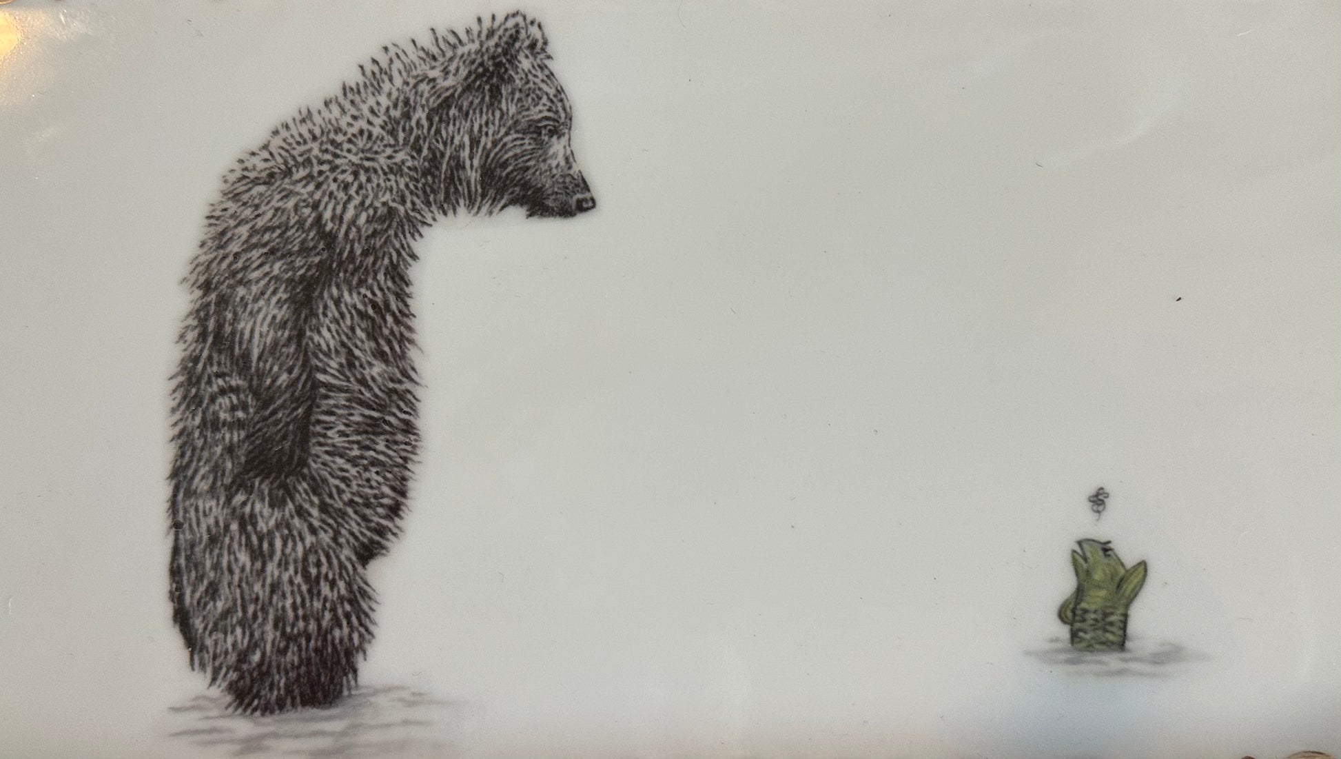 Kleine Vintage Platte, 15x 32 cm, mit Gold/ Rot gemustertem Rand. Winterling Bavaria
