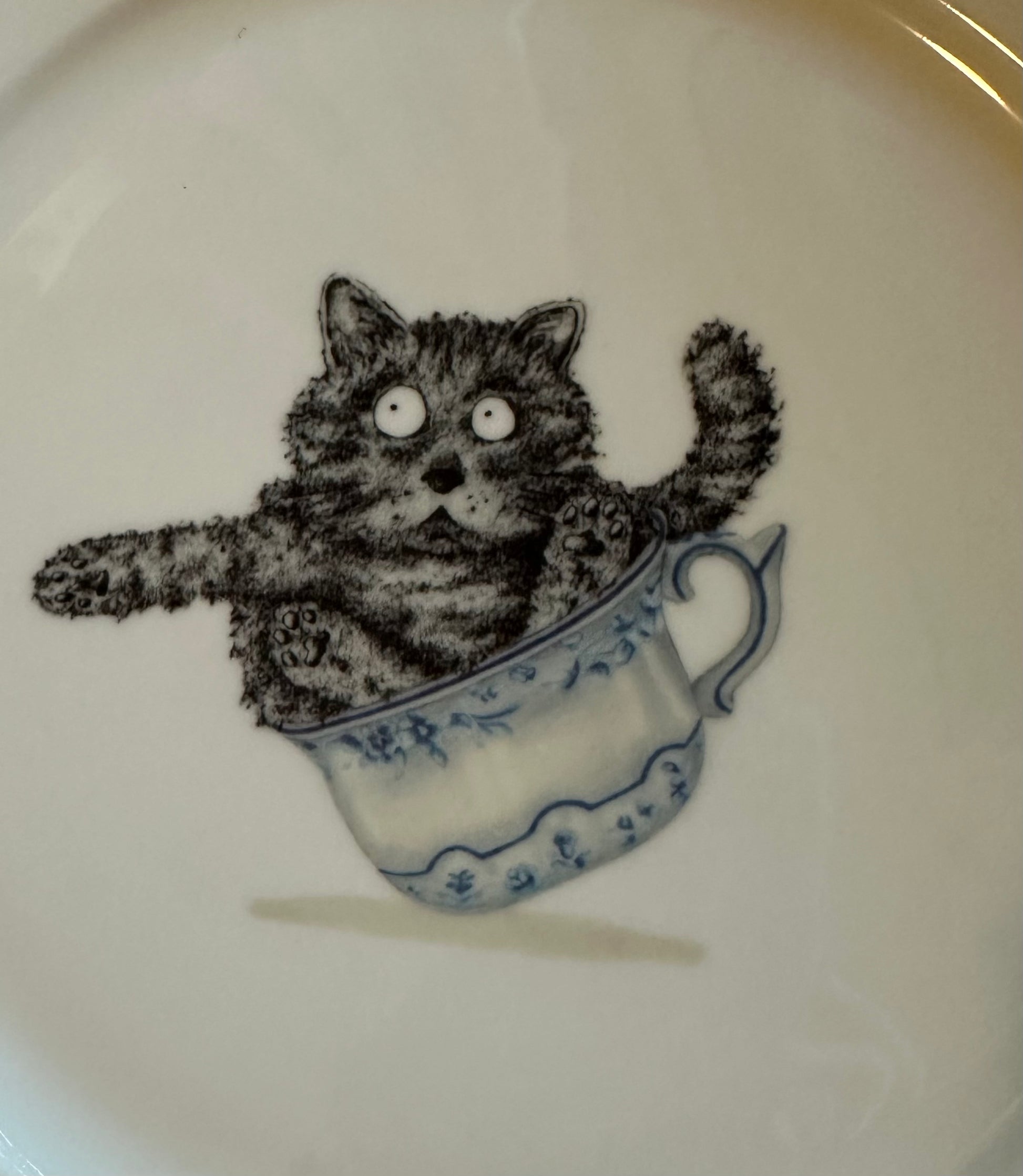 Vintage Teller mit Katzenmotiv, 30 x 30 cm, mit Goldrand. Johann Haviland Bavaria