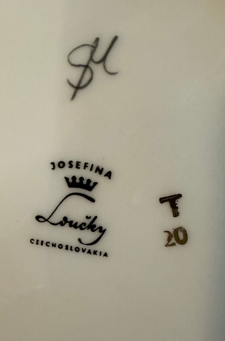 Kleiner Vintage Teller mit tanzendem Schwein, 17 x 17 cm, mit Gold gemustertem Rand. Josefina